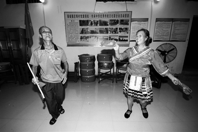 恭城瑶族自治县恭城镇庄埠村过去是远近闻名的贫困村,村里缺少文化娱乐活动。在开展精准扶贫工作后,庄埠村逐渐富裕起来。为改变村风,在村“两委”的支持和引导下,彭子愈、朱远萍、兰芳、彭祝文等有文艺天赋的村民组织大伙开始自编一些歌颂党和国家好政策、引领社会新风尚、传递真善美的文艺节目,并在节假日倾情为村民表演,演出现场常常欢声笑语一片。图为10月5日晚,在庄埠村文化活动室,当地农民在排练文艺节目。(通讯员 郑智敏)