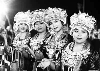 图为10月6日,在马安屯千盏油灯芦笙会活动上的姑娘。