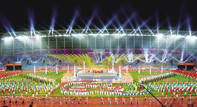 本报讯(记者 黄浩云 特约记者 曾庆春)10月24日晚,作为自治区成立60周年大庆系列活动之一,广西第十四届少数民族传统体育运动会在崇左市拉开帷幕,自治区政协主席蓝天立宣布运动会开幕,自治区副主席黄俊华致开幕词。自治区民宗委党组书记、主任何朝建主持开幕式。崇左市委书记、市人大常委会主任刘有明致欢迎词,国家民委文化宣传司副司长钟廷雄宣读贺信。