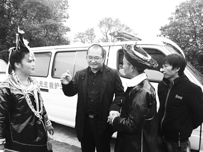 图为乾屯苗族群众热情地拉着专家的手,与专家进行交谈。(韦树重 韦 勋)