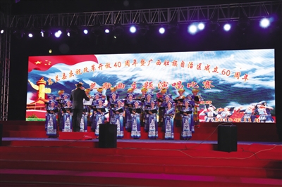 11月13日,由东兰县党委、县人民政府主办的庆祝改革开放40周年暨自治区成立60周年“感恩奋进新时代·决战脱贫新征程”主题演唱比赛在该县文化中心广场举行。