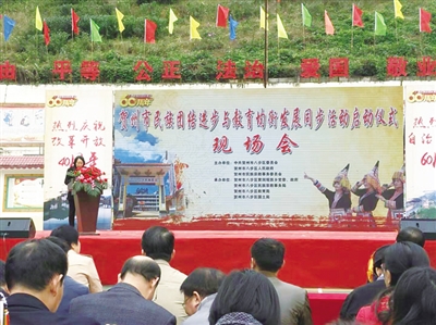 11月19日,贺州市“民族团结进步与教育均衡发展同步”活动启动仪式现场会在八步区黄洞瑶族乡举办。