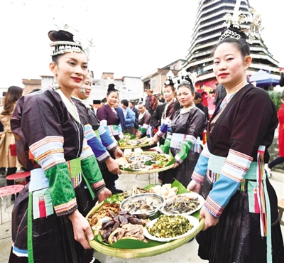11月19日是农历十月十二,罗城仫佬族自治县龙岸镇大蒙村纳冷侗寨举办一年一度的“抓鱼节”活动,当地侗族群众开展抓鱼比赛、唱侗族大歌、吃长席宴、游园赏花等丰富多彩的活动,祈求风调雨顺,年年有余。