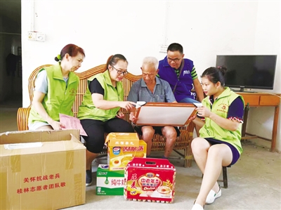在开展帮助孤寡老人等公益活动时,梁冰冰发现了抗战老兵这一特殊的群体,他们由于年老且经受病痛、贫穷的折磨,生活非常艰辛。梁冰冰被这些曾经为保家卫国做出过重大贡献的老英雄们深深感动,觉得有义务为风烛残年的抗战老兵们送上关爱和关心。逢年过节,她都要组织志愿者们上门送温暖。梁冰冰在走访径口镇秀岭桂的张其青老人时,发现93岁的张其青老人起居非常不便,屋子里连个电灯都没有。她立即发出呼吁,得到了社会上的捐资,为张其青老人建了一间新厨房,还给老人接通了电,安装了玻璃窗。