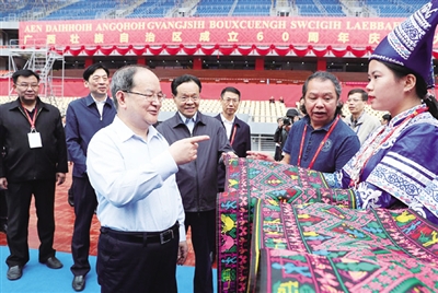 12月4日,自治区党委书记鹿心社,自治区党委副书记、自治区主席陈武实地检查自治区成立60周年大庆筹备工作,看望慰问有关服务保障人员。鹿心社、陈武来到庆祝大会、晚会举办场馆和大庆筹委会办公区,沿着活动预定路线边走边看,与正在参加彩排演练的文艺、医疗、媒体、安保、组织等工作人员握手致意,详细了解筹备工作进展情况,现场协调解决有关问题,安排部署下一步任务。