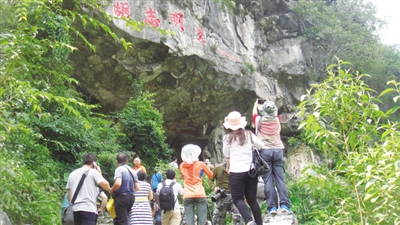 无巧不成书,我居然又在这里碰上了李父庆爷爷。当天他在那里当起了“导游”。当我们穿过一片树林时,他告诉我前面就是胡志明洞。眼前像舞台拉开了帷幕,豁然开朗,一幅奇妙的青山画卷展现在我的眼前。太阳当空照,照得环形的山屏微微闪亮。高高的山峰,在蓝丝绒般的天幕下衬托,显得格外峻峭。空气里,弥漫着野花的芬芳。宁谧、饱满、成熟。秋天,壮乡瑶寨的山野极美,美得无法用言语来形容。