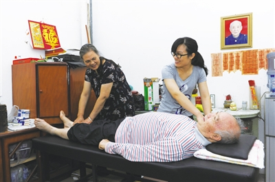 医生告诉麻莉红,公公婆婆的病情一方面要治疗,一方面还要保持愉悦的心情。公公常年卧床容易生褥疮,麻莉红就专门买来一张按摩床,定期为公公按摩、翻身,有时一按就是一两个小时,胳膊都累得抬不起来。公公脑中风说不了话,麻莉红就打手势与他沟通。婆婆胃不好,吃饭吞咽困难,更不能吃油腻的饭菜,麻莉红就专门给她单独煮。对待老人麻莉红总是不厌其烦,不急不怨。