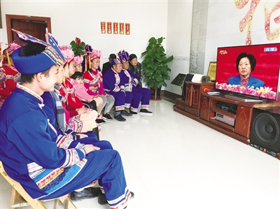12月10日,广西壮族自治区成立60周年庆祝大会在南宁隆重举行,象州县木屯村仫佬族群众自发组织收看自治区成立六十周年庆祝大会盛况。