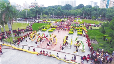 近日,百色市举办“千姿百色·多彩壮乡”民族文化巡游展演活动。当地12个县(市、区)的民俗表演队伍以各自独特的主题创意,经过中山二路、城北一路、向阳路、中山一路、解放街、江滨一路等百色城主要街道进行展演,为数万游客和市民送上一场文化大餐。(通讯员 覃蔚峰 摄)