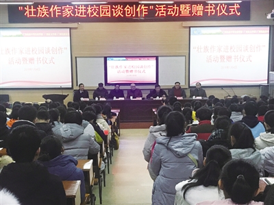 1月4日下午,由当代广西杂志社、广西民族出版社、壮族作家创作促进会联合举办的“壮族作家进校园谈创作”活动暨赠书仪式走进了广西壮文学校、广西民族中等专业学校、广西民族高中。