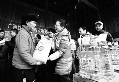 一方有难,八方支援。1月10日,广西红十字会志愿者来到龙胜各族自治县龙脊镇小寨村,为当地84户受灾群众送来油、米、保暖衣物等救灾物资,鼓励他们要坚定克服困难的决心,并祝愿他们过一个欢乐、祥和的新春佳节。