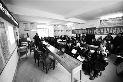 “种钩藤,护理是关键,学习管护技术才能提高产量、增加收入。”在培训班上,来自三江侗族自治县农业局的专家说道。1月10日,农业技术专家到三江富禄乡归述村开展中草药种植培训,深入浅出地讲解了钩藤种植管护、修剪等技术和病虫害防治方法,为该村钩藤种植户提供技术指导。在脱贫攻坚工作中,富禄乡积极宣传扶贫惠民政策,鼓励贫困户发展产业,大力种植钩藤,建成1个面积为150亩的钩藤种植产业基地,为30多户贫困户提供就业机会。全乡钩藤种植面积达1000多亩,每亩可使种植户实现增收1200元。图为钩藤种植技术培训班现场。