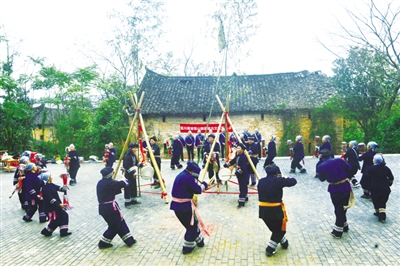 1月13日,富川瑶族自治县葛坡镇青山脚瑶族古文化艺术团在青山脚村文化广场举行了一场别开生面的瑶族原生态祭冬庆丰收活动。瑶族同胞们唱起瑶歌、跳起瑶舞、吹响芦笙、展示织艺,载歌载舞欢庆丰收并喜迎新春佳节。