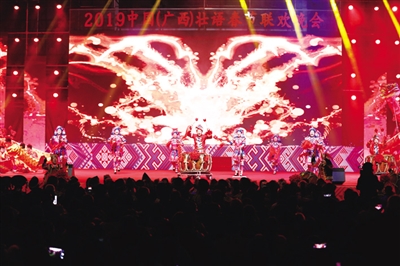 本报讯(记者 韦亦玮 通讯员 王杰清)1月23日晚,万众瞩目的2019中国(广西)壮语春节联欢晚会在广西合山市体育馆隆重举行。晚会历时两个多小时,节目内容丰富,涵盖舞蹈、声乐、杂技、小品、服装走秀等多种表演艺术形式,高潮迭起,年味浓郁,创新亮点多,精彩的表演不时赢得观众热烈的掌声,现场气氛热烈欢快。