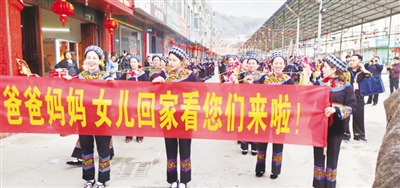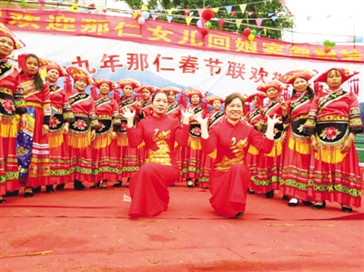 2月10日,巴马瑶族自治县燕洞镇那仁、拉架两个自然屯举办女儿回娘家新春联欢会。联欢会通过民族服装展演,展现外嫁女儿的风采;通过山歌演唱,表达感恩父母养育之情;通过为父母洗脚洗脸、喂父母一口饭菜、拥抱一次父母等感恩父母的行动,宣扬传统孝道文化。