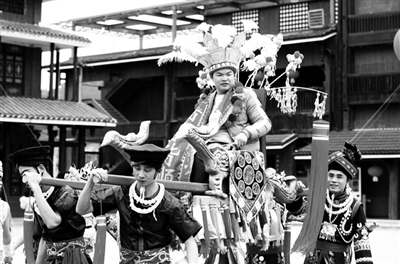 图为演员表演侗族特色节目《抬官人》。(通讯员 吴练勋)