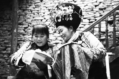 老家寨位于湖南省湘西土家族苗族自治州凤凰县雄龙村。2018年7月,老家寨实施易地搬迁后,将苗族手工艺与当地旅游业相结合,在传承传统技艺的同时,带动贫困家庭增收脱贫。截至2018年底,老家寨建档立卡户61户261人全部实现脱贫。图为2月18日,老家寨的绣娘探讨苗绣技艺。