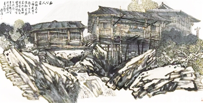 画家深情地说,吊脚楼在桂北地区比较普通,但元宝山的雄奇险峻、巨石散落,巨树成林、木楼石上,村寨依山而筑、云雾缥缈的景致,却是其他地方所鲜见的。除此之外,这里的民风也是特别的吸引人。画家自小就有山寨情结,现在已经浸入骨髓。因为他自小就生活在一个小县城里,原本就是山村野夫,有着沈从文一样的“乡下人性格”。20世纪80年代后期,他第一次乘车登临元宝山的时候,发现这里就是自己山水画创作的精神领地,因为,来到青山寨,有如飞鸟投林、野兽归山,身心里获得一种难以名状的归宿感和舒适感。尤其是跟苗家人在一起,可以抽烟抽到一块,对得上火;喝酒喝到一起,话说到心坎上。在这里生活和创作,彰显了画家生命底色中的乡土性格,真正是“踏遍青山人未老,风光这边独好”。因此,保护好石上人家的人文环境,守住苗家人的优秀传统,自然就成为元宝山开发与保护、建设与发展的重要任务。