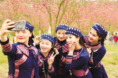 2月24日,以“赏桃园美景·寻毛南风情”为主题的环江毛南族自治县第三届桃花节在该县八戒山公园正式开园迎宾。来自贵州、湖南等地的数万名游客和当地群众一起听歌赏舞品桃花,喜迎春天的到来。