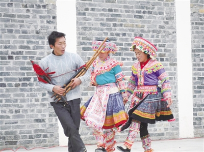 近几年来,西林县着力打造那劳宫保府生态旅游景点,不断挖掘本土文化,把精彩的文艺节目奉献给广大游客。去年农历九月初九重阳节,那劳镇在宫保风情岛举行了第三届“情系重阳”活动,在得知王国亮一家会跳芦笙舞后,便邀请他们一家人参加活动。王国亮接到通知时,高兴得流下激动的泪花。那天,他们一家5口人早早来到风情岛,登上了梦寐以求的舞台。王国亮几声洪亮的敲鼓声刚落,热闹的观众一下子变得鸦雀无声,静静地看着登台的这一家人。王顺光手拿芦笙,嘴一鼓一鼓地吹着,“罗——哩——罗,哩——罗——哩——罗”随着芦笙的响起,王顺美、王顺之和熊明珍翩翩起舞,王顺光一面翻滚,一面吹出优美的芦笙乐曲,令观众如痴如醉。他们尽情起舞,尽情释放内心的热情,激动得边跳边流泪,整个场面极具感染力,有些观众还主动登台与这一家人共舞。他们一家三代这一次终于梦想成真,一家人在台上相拥而泣!