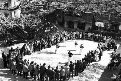3月9日,在柳州市融水苗族自治县四荣乡东田苗寨,村民参加“跳袋鼠”比赛。当日,该县四荣乡东田苗寨与怀洞镇上聘洞侗寨开展联谊活动,苗侗群众汇聚一堂,以“村晚”、拔河等文体活动搭台,说农事,叙情谊。