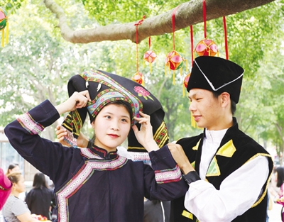 3月31日,“壮族三月三·最炫民族风”活动在百色市右江区体育广场举行。当地各族群众齐聚一堂,通过现场进行壮族手工艺品制作及展示、民族服饰走秀、五色糯米饭派送等活动,传承民族优秀传统文化,喜迎“壮族三月三”佳节到来。(通讯员 陆 杰)