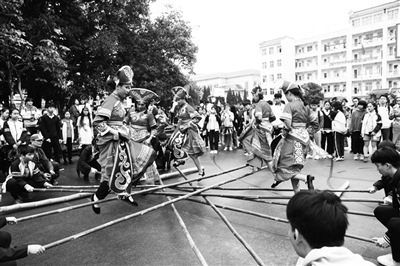 图为竹竿舞表演。(广西民族中专)