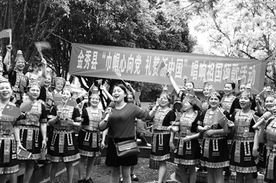 图为瑶族妇女唱响《我和我的祖国》。