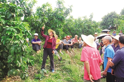 培训中,县水果局技术人员深入浅出地解说如何从植物营养上提高果实品质,多施有机肥、及时补充作物需要的中微量元素等,还分析了红心香柚果面伤痕成因和不同时期的病虫害防治技术,以及保花保果等注意事项。