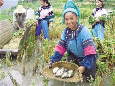 以前一亩田的产值仅仅2000元上下,如今在“稻鱼鸭”模式下,基本能达到1万元左右,实现了亩产“百斤粮、百斤鱼、千枚蛋、万产值”。在全面推进脱贫攻坚过程中,红河州在保护哈尼梯田的同时,开发出“稻鱼鸭”绿色高产高效综合种养模式,增加农村产业附加值,实现“哈尼梯田保护+脱贫攻坚+民族团结进步示范创建”三赢。如今,梯田“稻鱼鸭”高效种养基地已成功申报国家2018年区域生态循环农业项目。