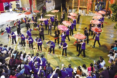5月5日,三江侗族自治县林溪镇冠洞村冠大屯到平岩村平坦屯开展“月也”活动,两寨群众以芦笙踩堂、侗族大歌、民族歌舞、多耶及百家宴等多彩节目激情互动,尽展侗乡缤纷风情。侗族“月也”,意为集体游乡做客,是侗乡增进村寨友谊交流的一种社交习俗。下图为当天侗族群众在进行芦笙踩堂表演。(通讯员 龚普康)