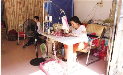 为了方便照顾大儿子及丈夫,同时打工赚钱供小儿子上学。2013年,韦艳娇一家在爱心人士的帮助下搬到县城的免费住房中,35平方米左右的单间里挤着一家4口人。这里不仅是全家人吃住的地方,也是韦艳娇的手工“小作坊”,因为需要寸步不离守护在生病的儿子和丈夫身边,韦艳娇无法外出打工,只能接些零活自己在家做。提到这事,韦艳娇开心地说“每天加班加点,一个月能挣1000多元钱呢。”这1000多元和每个月1000元的低保收入,是这一家人的活命钱。