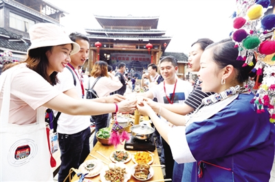 近年来,三江侗族自治县巧借平岩村、冠洞村等村屯百家宴的传统习俗优势,通过“扶贫+旅游”模式,向中外游客展示侗族饮食文化、侗族服饰、侗族纺织以及拦路迎宾、芦笙踩堂、侗族大歌、敬酒歌、多耶舞等侗族歌舞文化习俗,吸引游客前来体验。今年1至4月,全县接待游客达272.16万人次。
