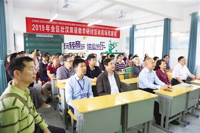 为探讨交流壮汉双语教学新理念新模式新成效,推动全区民族文化和教育内涵发展,5月30日至31日,由自治区教育厅主办的2019年全区壮汉双语教学观摩研讨活动在环江举行。来自全区壮汉双语试点市县教育主管部门领导和部分学校骨干教师60多人参加了本次活动。