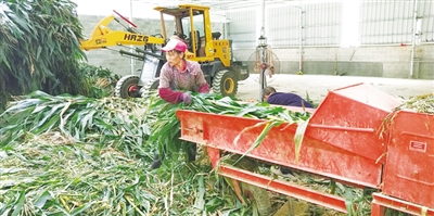 6月9日,在位于都安瑶族自治县东庙乡弄坤村的广西鑫兴农牧发展有限公司的“粮改饲”加工厂里,几台运输车往来穿梭,连秆带叶齐根整株的粮饲玉米被推入、粉碎,碎块通过机器料口,源源不断扬进紧跟一辆辆厢式货车的车厢内。据悉,今年该乡弄坤村“粮改饲”加工厂收得青贮2.5万吨,售往本县保安乡、拉烈乡、大化县七百弄乡等地,年纯收入达60万元。截至目前,该县全面开展优质高产饲草种植项目,饲草种植面达10.8万亩,其中建档立卡贫困户种植6.48万亩,实现县有万亩示范基地、乡有千亩示范片、村有百亩示范片、20户以上自然屯有10亩示范点,饲草种植面积创下了历史新高。图为广西鑫兴农牧发展有限公司工人正在粉碎粮饲玉米。