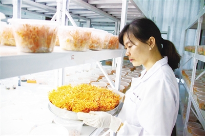 菌种关突破了,又迎来环境关。虫草对生产环境的要求要比食用菌培育严格得多,温度、湿度、光照、灭菌有一样控制不好都不行。黄秀英每天像新生儿特护室里的护士一样,几乎二十四个小时在仔细观察,不能片刻马虎了事。经过几年不断地实验摸索,黄秀英在一次次的失败中积累经验,最终形成一套成熟的蛹虫草培育技术。