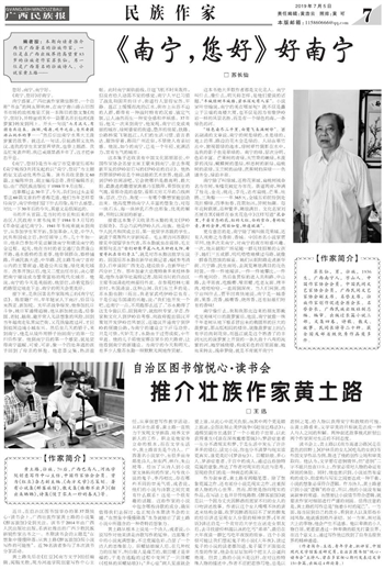 编者按:本期向读者推介两位广西著名的壮族作家,一位是在广西出版界德高望重83岁的壮族老作家苏长仙,另一位是广西著名的壮族诗人、小说家黄土路——