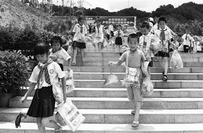 近年,三江依托粤桂扶贫协作,大力推进教育扶贫,通过捐资援建江川小学和江川中学、设立江川教育奖、派遣优秀师资支教及爱心助学等多重举措,倾力对侗乡学子扶智与扶志,有力阻断贫困代际传递。图为学生们拎着奖品高高兴兴回家去。