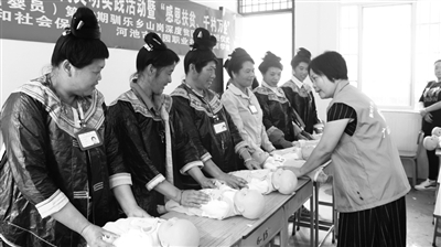 7月16日,环江毛南族自治县新时代文明实践活动暨“千村万企”职业技能培训(育婴员)培训班走进驯乐苗族乡山岗村,为50多名苗族妇女开展职业培训,促进少数民族贫困群众稳定就业。