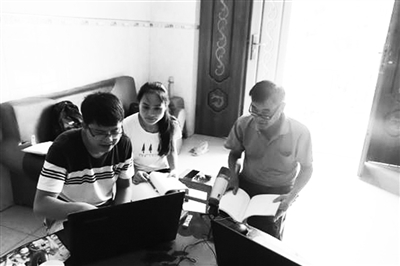 调研期间,课题组了解了作登瑶族布努语的现状及使用情况,并使用现代录音设备、国际音标等形式,对作登瑶族乡布努语作录音和记录。兰庆军认为,语言是文化的载体,布努瑶只有语言而没有文字,保护好语言对瑶族文化传承与发展具有深远意义。图为兰庆军(左一)用国际音标记录布努语的发音。