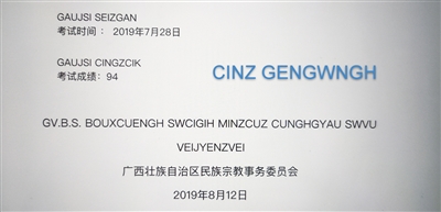 编者按: 7月28日,2019年度壮语文水平于在广西南宁举行。在参加考试的464名考生中,有一个叫秦健畊的山东小伙儿,他考取了初级等级94分的成绩,夺得了第一名。