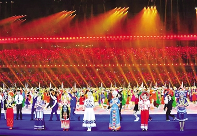9月16日20点,郑州奥林匹克体育中心体育场灯火辉煌。第十一届全国少数民族传统体育运动会闭幕式在这里举行。来自全国各地的各族运动员、教练员和来宾,在欢乐、祥和的氛围中,共同庆祝本届运动会取得圆满成功。