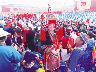 9月27日至10月1日,全国少数民族参观团在北京组团。广西受表彰的民族团结进步模范集体和模范个人代表身穿艳丽的民族服装,同全国少数民族代表一起登上长城饱览祖国的大好山河;参观庆祝中华人民共和国成立70周年大型成就展,共同回顾了70年来新中国走过的非凡历程;走进中国人民抗日战争纪念馆,重温了各族人民不屈不挠抵御外辱、艰苦卓绝浴血奋战的历史;观看庆祝中华人民共和国成立70周年文艺晚会,品味各民族文艺大繁荣的风采;在庆祝中华人民共和国成立70周年大会现场观看阅兵式和群众游行盛况,切身感受祖国的繁荣富强;参加首都国庆联欢活动,在漫天绚烂烟火中一齐赞颂盛世中华……他们当中,很多人一直默默无闻地扎根于祖国南疆边陲,从来没有走出过大山。
