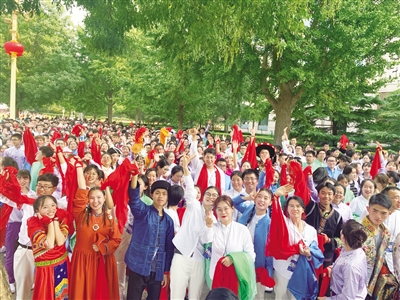 回忆两年前的那次联欢会活动,最让她难忘的是一个为联欢会特别策划的小品,它重现了当年民大广西师生决定举办广西在京人士“壮族三月三”联欢会的场景。小品里的台词“在民大,其他民族师生都会庆祝自己的节日,为什么我们壮族、我们广西不庆祝呢?”触动了她。正是这句话使她意识到,“壮族三月三”联欢会的举办不仅是为了乡亲好友的团聚,更是为了唤起所有壮乡在京游子内心深处的民族情感。民族节日,是民族信仰力量的熔铸,更是民族文化自信的凝聚,共庆“壮族三月三”,共庆广西人自己的节日,广西人才能在雄关漫道上携手并进、砥砺前行。