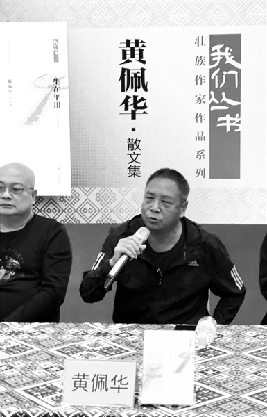 《生在平用》作者黄佩华向读者介绍,他说他的家乡平用是桂西北的一个壮族村寨,平用在壮语里是缓坡、平地的意思,那里依山傍水、风景优美。惯于写小说的他这次之所以用散文去描绘家乡,是想把真实情感记录下来。因为小说可以虚构但是散文却是真实的,散文是一种情怀,是对人生的纪录,散文其实就是心灵史、生命史。