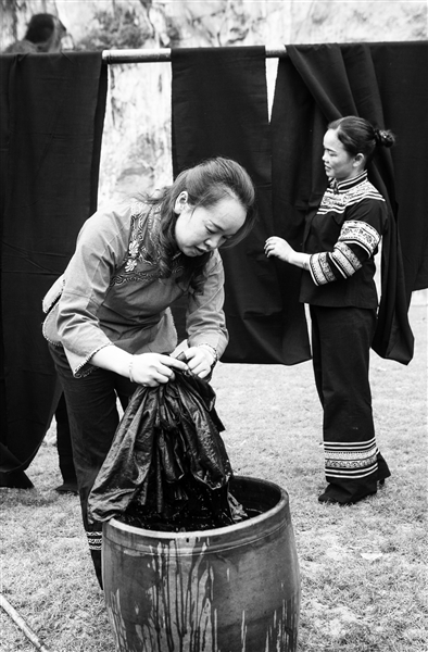 图为凤山县金牙瑶族乡壮族妇女在染布。