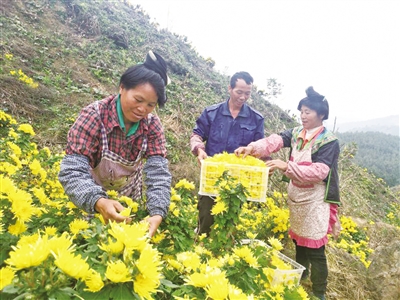 为进一步巩固脱贫户脱贫成果,该县实施“万亩万户、一基双带” 后续产业扶持工程,总投资3亿元在大沙坡创建1.2万亩现代特色农林(油茶)扶贫产业园,并引导少数民族贫困群众在油茶树下套种金丝皇菊、杭白菊等菊花2216亩,目前已全部进入采摘期。干菊花100至200元一公斤,每亩收入7000至8000元,有效保障了2009户脱贫户有一项以上新增、持续、稳定收入来源产业项目,实现脱贫户稳固增收目标。