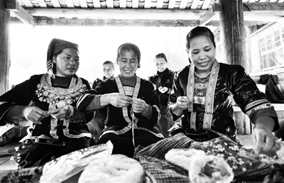 11月15日,在龙胜各族自治县平等镇龙坪村,当地侗族群众在制作手工艺品。近年来,龙坪村在当地致富带头人的推荐下,与广东一家企业进行“订单式”合作,厂家将手工艺品原料从广东寄送到该村,由当地群众进行手工初加工,并定期收购成品,每户每月可获得1000多元的收入,目前全村有50多户加入到工艺品制作行列,“足不出村”也能增收致富。