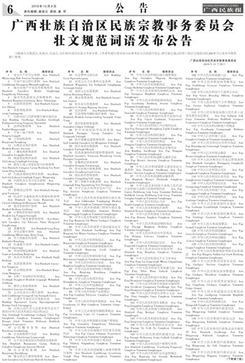 广西壮族自治区民族宗教事务委员会壮文规范词语发布公告