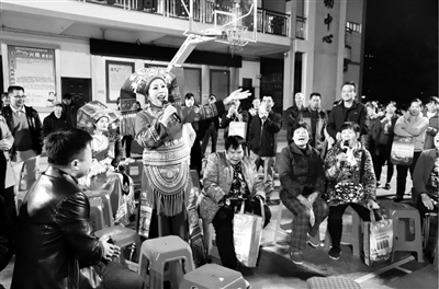 12月9日晚,来宾市新时代文明实践活动“山歌走基层”宣讲志愿服务活动走进武宣县。活动邀请广西山歌王郭秀莲及各县市优秀山歌手参加,用山歌的方式带领大家唱响党的十九届四中全会精神、《新时代公民道德建设实施纲要》《新时代爱国主义教育实施纲要》《广西壮族自治区文明行为促进条例》和脱贫攻坚相关政策等。